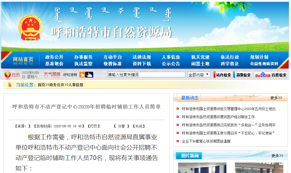 根據(jù)工作需要,呼和浩特市自然資源局直屬事業(yè)單位呼和浩特市不動(dòng)產(chǎn)登記中心面向社會(huì)公開招聘不動(dòng)產(chǎn)登記臨時(shí)輔助工作人員70名,現(xiàn)將有關(guān)事項(xiàng)通告如下: ...